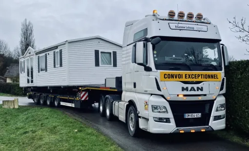 Transport d'un mobil-home à Rouen réalisé par ELTS – Étienne Leloup Transports Spéciaux illustre le savoir-faire de l’entreprise…